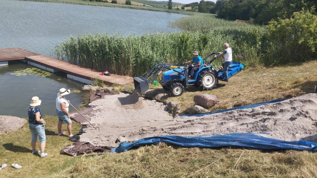 W dniu 05.07.25 odbyły się ustalone na walnym zebraniu, planowane, zapowiadane prace porządkowe mieszkańców osiedla w celu przygotowania rejonu plaży do sezonu letniego i aktywnego wypoczynku. Jak zwykle w pracach wzięły udział te same, zaangażowane dla dobra osiedla osoby, dbające o części wspólne właścicieli działek, którym serdecznie dziękujemy za poświęcony czas i włożony wysiłek w wykoszenie trawy i chwastów, usunięcie wodorostów, przetransportowanie i ułożenie 5 Ton piasku dla dzieci i naprawę pomostu wędkarskiego.
